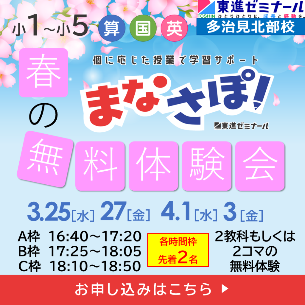 上記の枠で無料体験を実施します。 お子様の勉強法や成績でお悩みの方はぜひ、ご体験ください。
