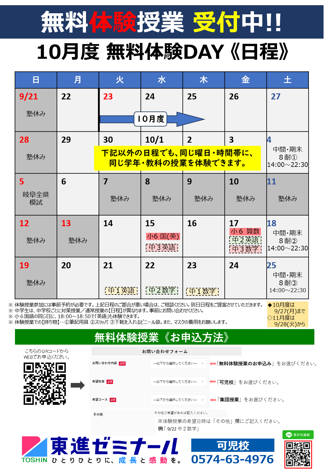 可児市の学習塾、東進ゼミナール可児校では「無料体験授業」に参加いただけます。