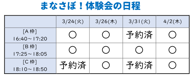 ※体験会と同じ曜日・受講枠で、4月度から受講できるとは限りません。