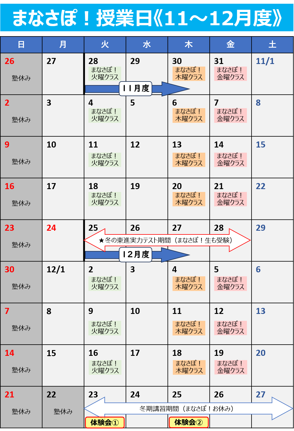 ※現行の空き枠で「体験授業」を受けることもできます。