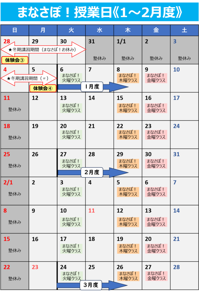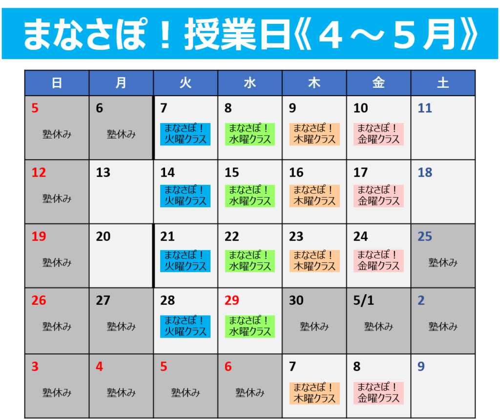 まなさぽ!授業曜日と空き状況