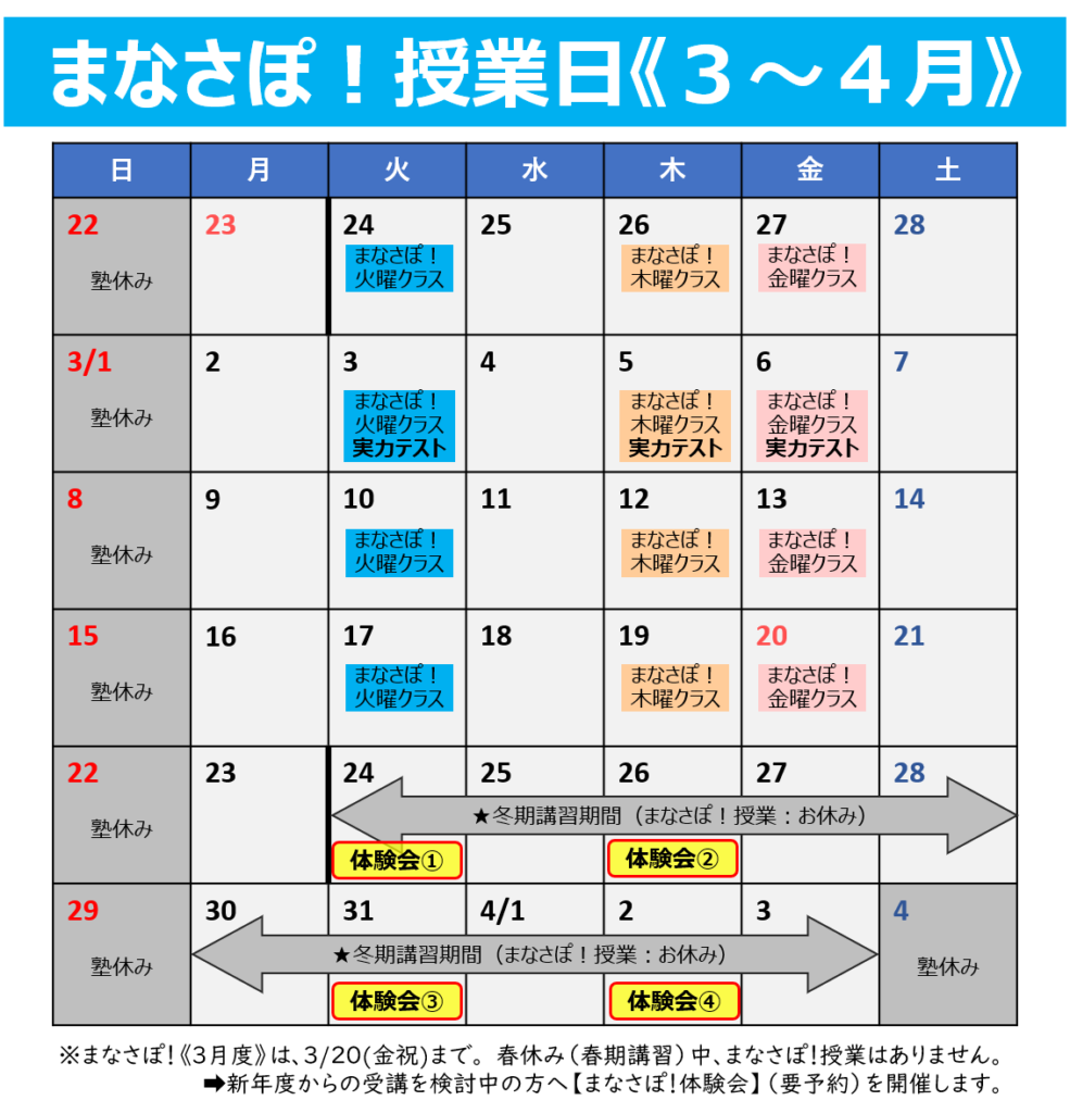 ※体験会と同じ曜日・受講枠で、4月度から受講できるとは限りません。