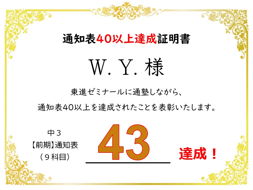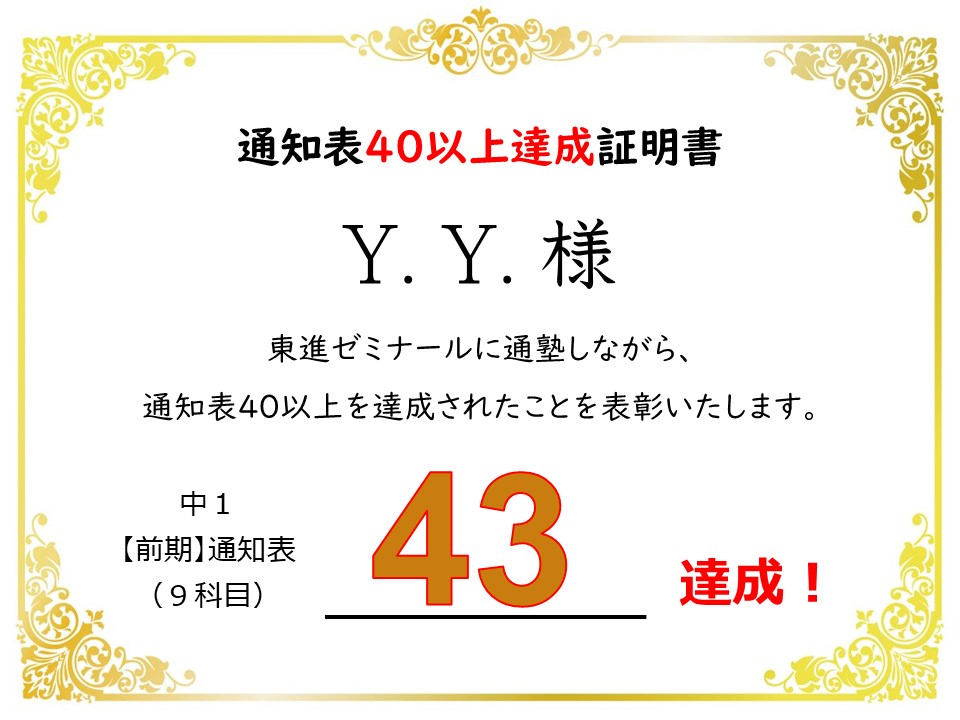 中1 Y.Y.くん →【43】:5科目オール5