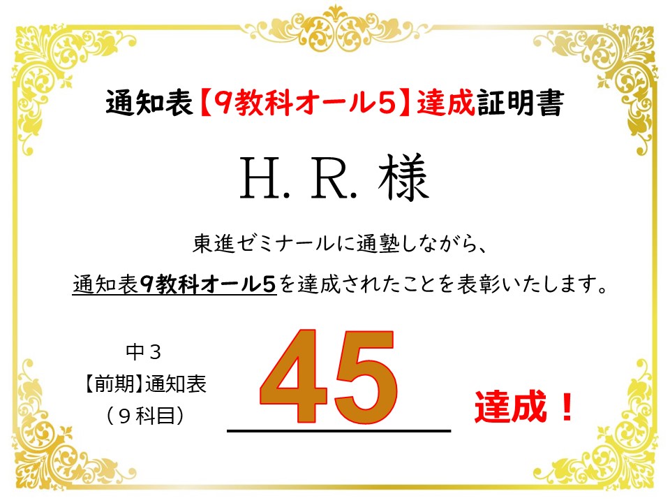 中3 H.R.くん →【45】:9科目オール5