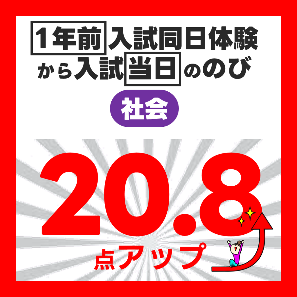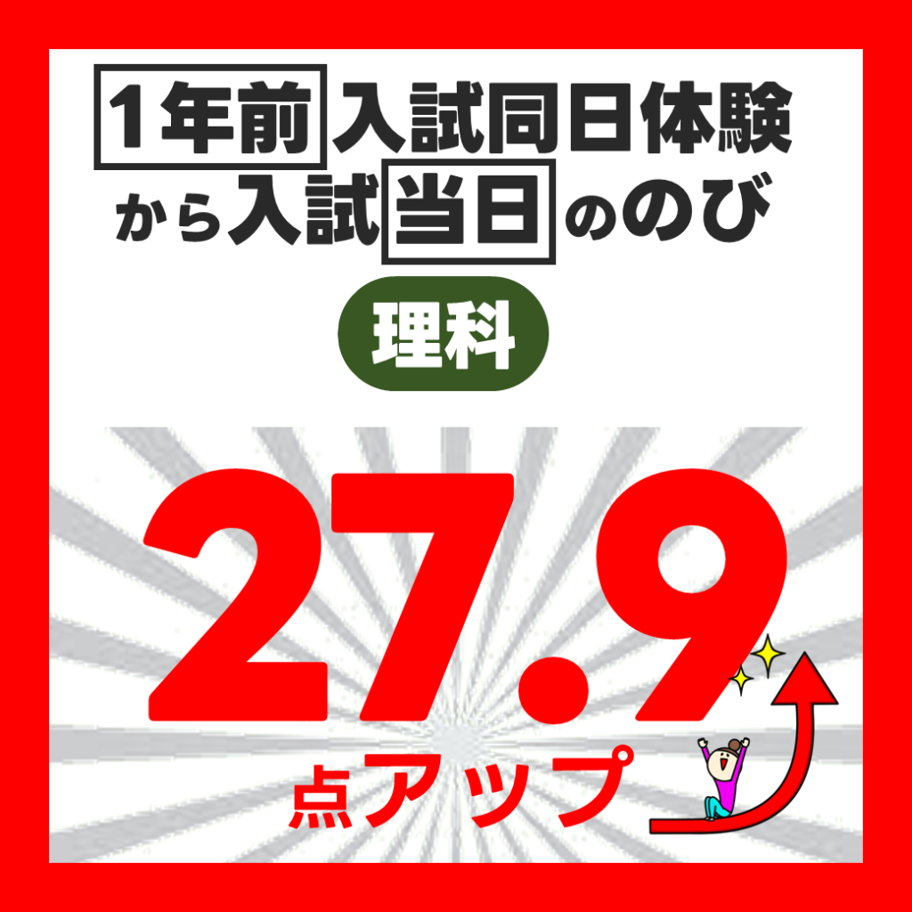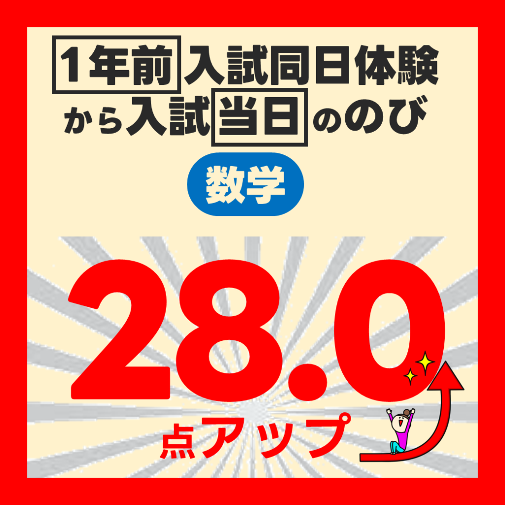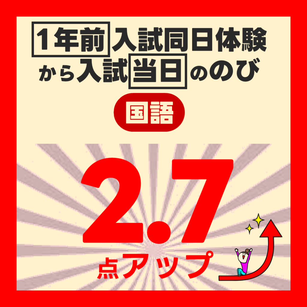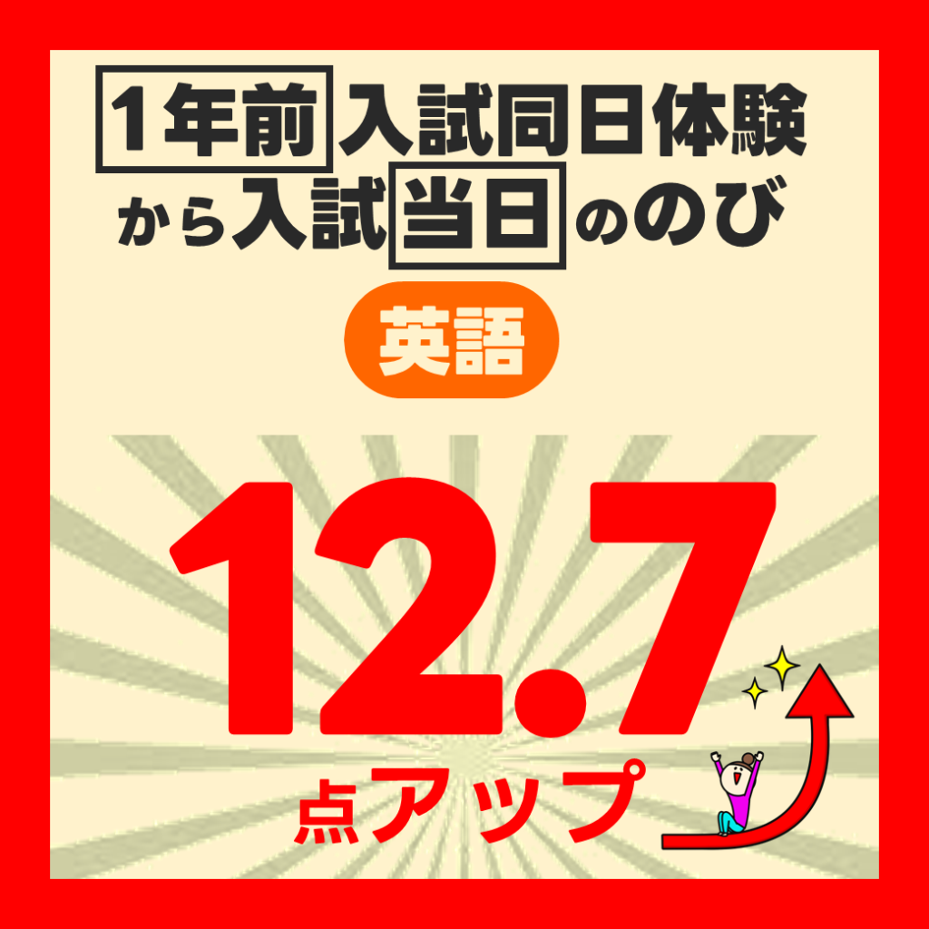 1年前の「入試同日体験」から「入試当日」まで、「何点アップしたか」の平均を見てみると、、、