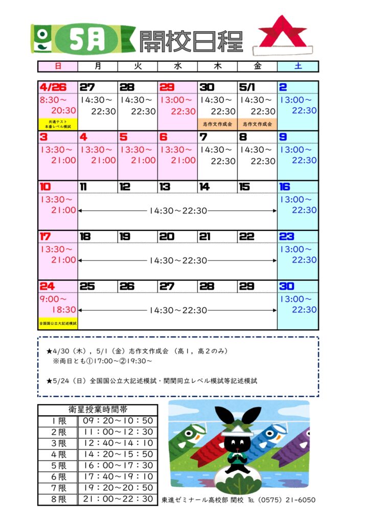 5月の開校日程です。