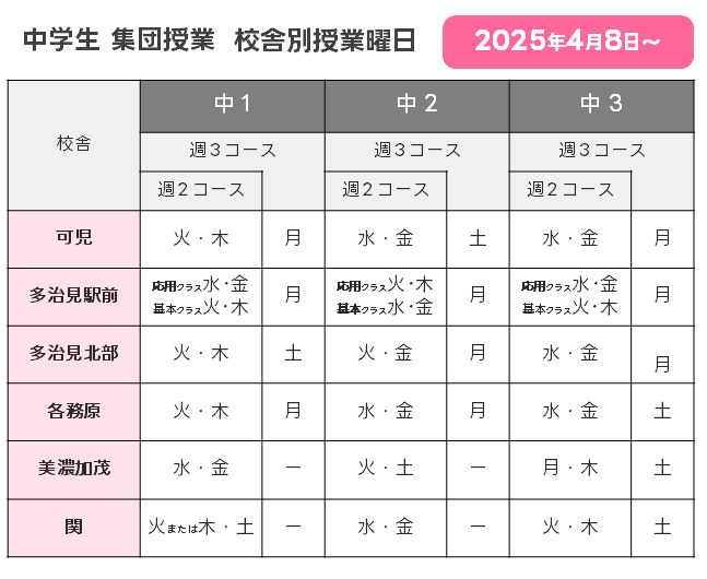 中学生コースの集団授業では、授業の時間割を曜日ごとに「知識を習得する日(わかる日)」と「知識を活用する日(できる日)」に分け、「この時間、自分は何をすべきか」「自分自身が取り組むべき課題」を明確にします。これにより、主体的な学習姿勢を養成します。知識の習得とその活用を繰り返すことで、基礎から学力を積み上げるとともに応用力・実践力が育ち、生きた学力を伸ばします。