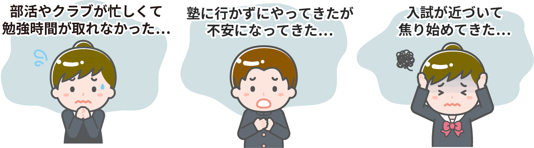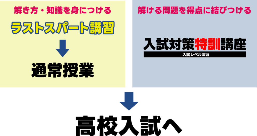 ※残り期間の学習を最適に進めるために、ラストスパート講習を受講される方には、入試までの総合的な学習プランを設計するために基本的にその後の継続入塾をお願いしております。