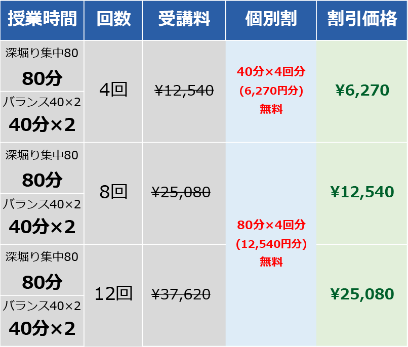 理解を深めたい方におすすめ80分間、1教科に集中してじっくり取り組むスタイルです。途中で教科が切り替わらないため、思考の流れが途切れず、理解を深める・応用力を伸ばすのに最適です。「苦手を克服したい」「得意をもっと伸ばしたい」そんな目標に応える、“深掘り型”の授業モードです。