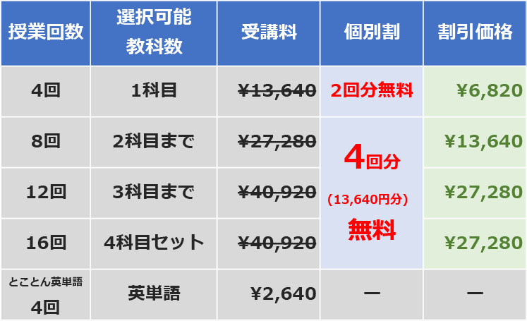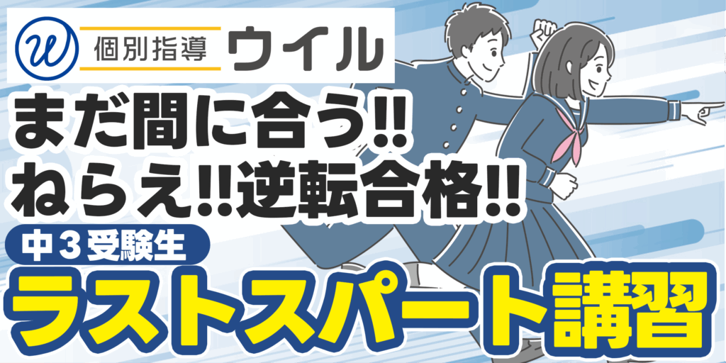 集団授業ではまだ特典付き講習がありますが、個別指導で特典付きなのはラストスパート講習が最後!中3生向けのおトクな講習はこちらから!!